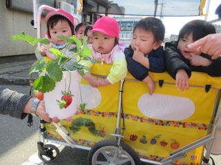 ![]() 葉っぱつきのイチゴを見せてもらいました(さ) |