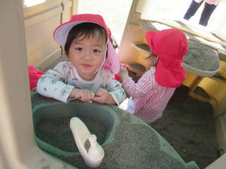 ![]() 0・1歳児さん 園庭であそびました ハウスのなか |