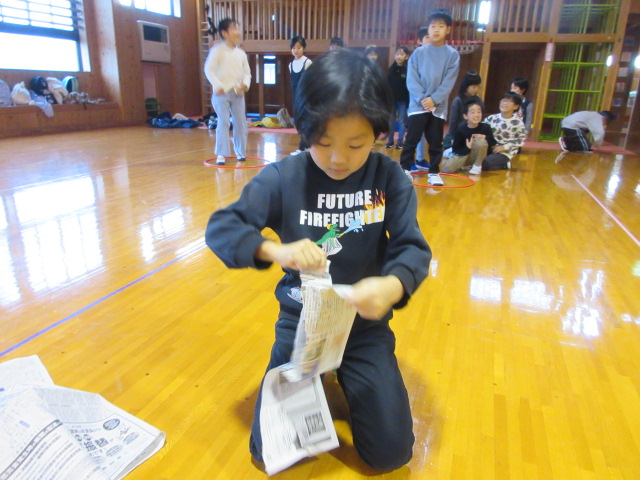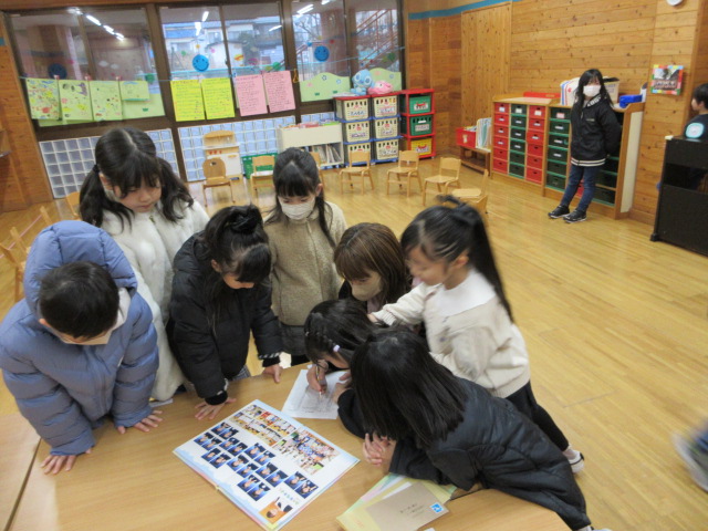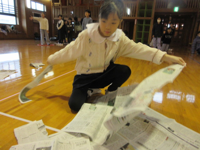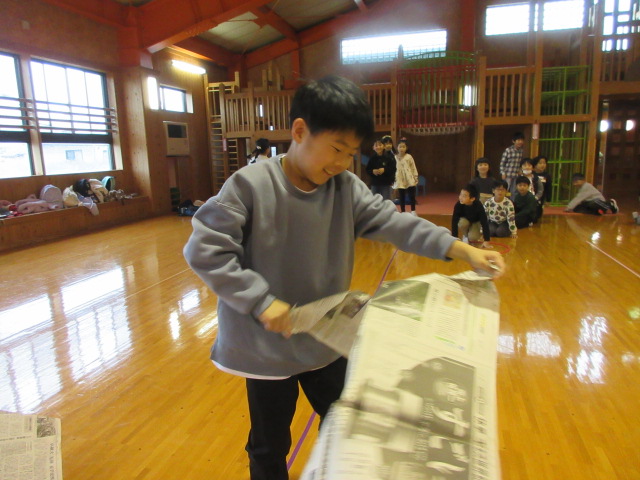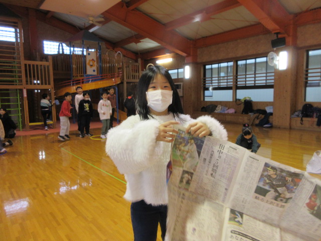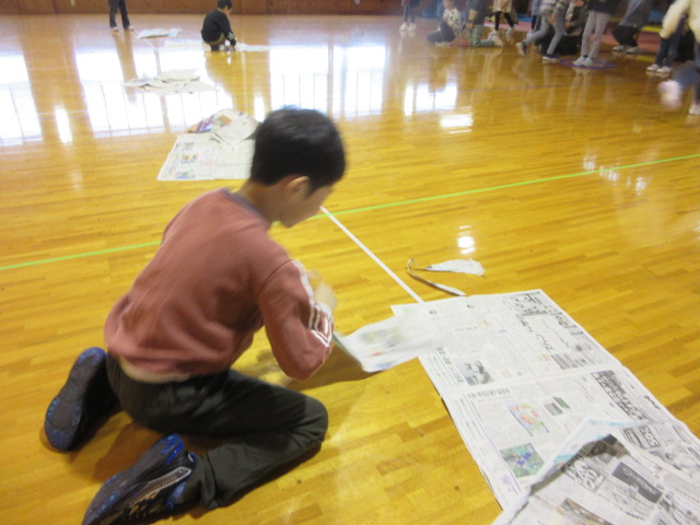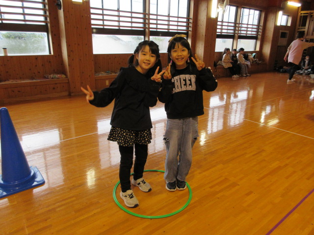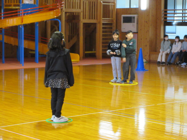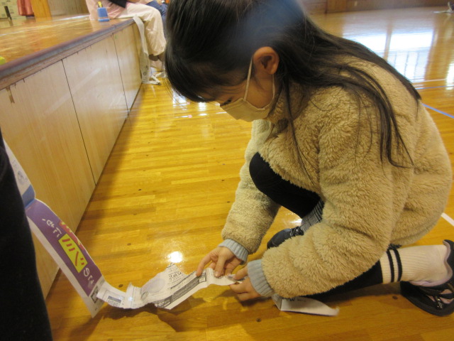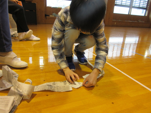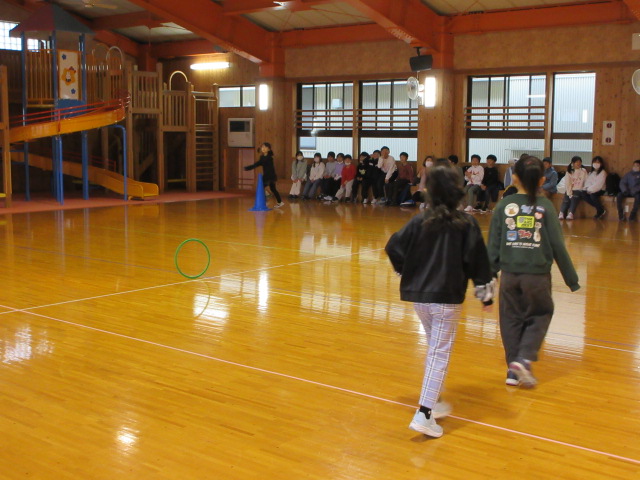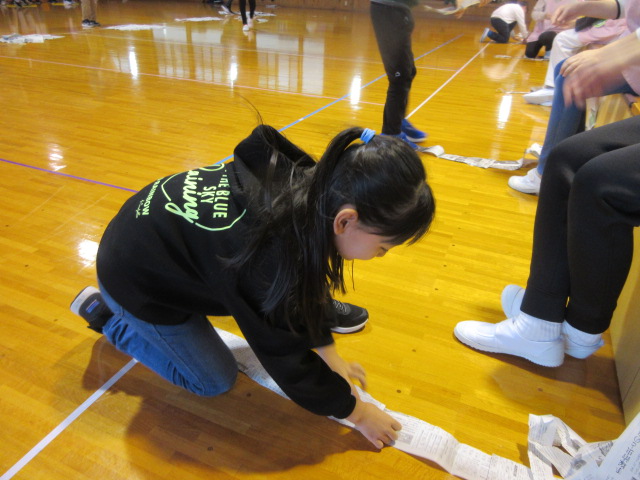 フープ取り、新聞つなげレース、幼稚園の思い出ビンゴを楽しみました。