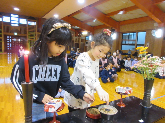 大ホールではおまいりをしました。