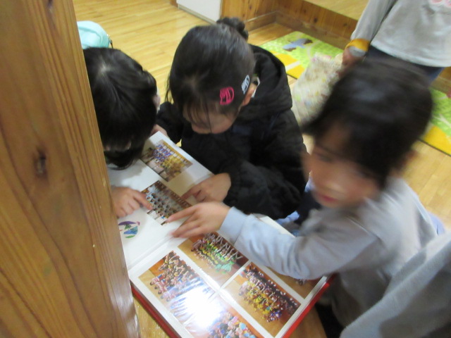 朝の会をして、懐かしい園内を見学。