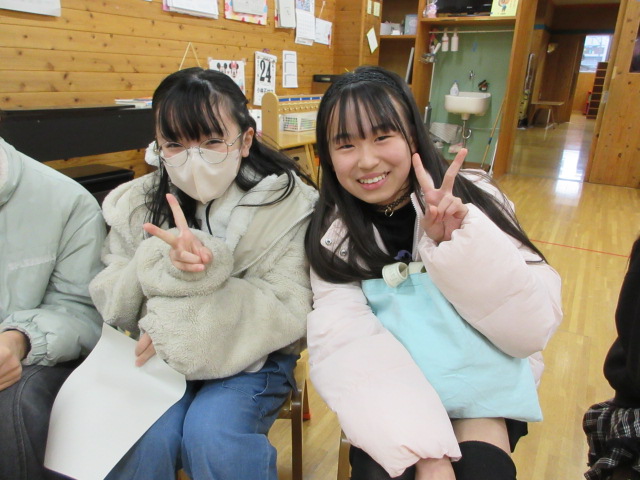 年長時のクラスに集合し、久しぶりのクラス会。