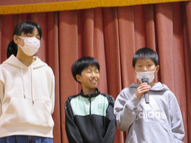 インタビューでは、中学校で頑張りたいことを発表してくれました。