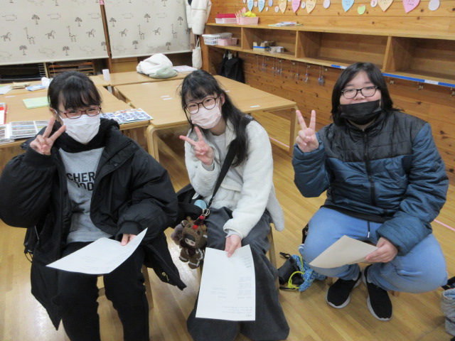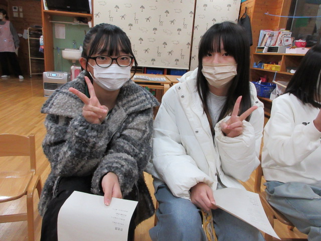 年長時のクラスに集合し、久しぶりのクラス会。