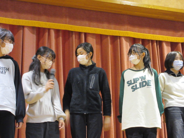 インタビューでは、中学校で頑張りたいことを発表してくれました。